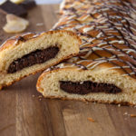Place the chocolate filling along the middle of the dough, leaving 1/2 inch at the top and bottom. Mold the filling evenly and flatten it gently to about 1 inch thick, before braiding for best results and even chocolate distribution.
