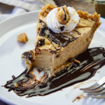 When you're ready to serve, decorate the top of the pie with the 1/2 cup of whipped cream, the peanut crumbles and if an option a drizzle of chocolate or caramel sauce!
