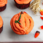 Add to a piping bag fitted with desired tip and pipe 5 semi-circles following the shape of the cupcake, starting on the outside and working your way in.